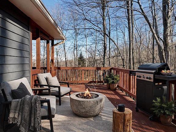 Welcome to your cabin in the woods! This raised rancher was recently renovated and is move-in ready. Surrounded by trees & nature, yet also in a great commuter location - private and also convenient. Two fully finished levels. Brand new kitchen with butcher block cabinets flows into open dining and living room with french doors to covered porch and large deck area. Enjoy outdoor and indoor living with spacious yard and patio that enters into ground-level lower level of home that is fully finished. Downstairs there is a 3rd bedroom, full bathroom, den with woodstove and another living room area. Many wonderful amenities close by including nature reserve, wineries and scenic vistas. All of this in a great commuter location near 66, makes for a great full-time residence, weekend retreat within an hour of the metro area, or an income-producing short-term rental (pending county and HOA approval). Linden Heights is a lovely neighborhood, within a sanitary district that maintains the roads (fees are collected with taxes - these amounts are estimated in the listing; buyer to verify). Recent renovation and ready to move-in, with a lot of nice upgrades including new roof. PRICED CLOSE TO TAX ASSESSED VALUE - WHAT A DEAL!