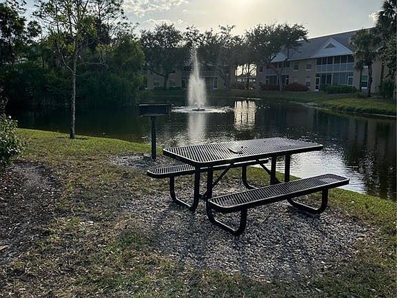 Spacious 2 Bedroom, 2 bath condo, with den or formal dining room, corner unit, 2nd floor with beautiful lake and fountain views, screened balcony, tiled with exception of carpet in the bedrooms, Primary bedroom has a walk-in closet and en-suite bathroom with shower. Soaring ceilings, white kitchen cabinets, and washer/dryer in unit! Resort style heated community pool and hot tub, clubhouse, seasonal activities, catch and release fishing, private driveway, with one covered assigned carport, and unassigned guest spots throughout community. Great North Naples location in Palm River. Close to Beaches, shopping, dining, and NCH North.
