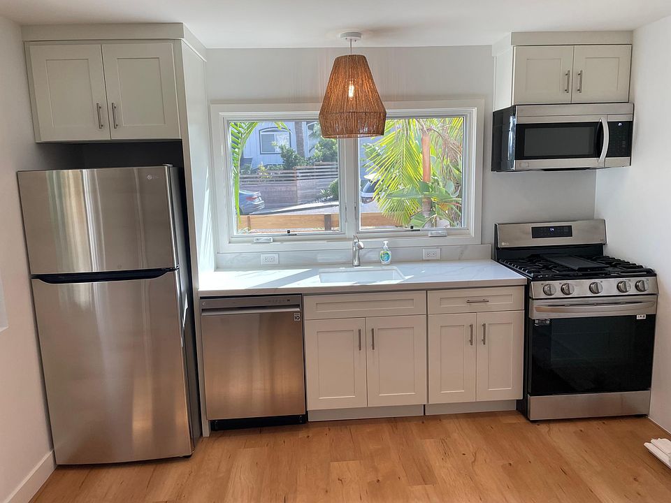 1 bedroom, 1 bath (~437sqft) with large outdoor space that can be used for parking, an extended outdoor living area, or both! Walking distance to Beacon's and Grandview beach as well as to all that Encinitas and Leucadia has to offer. Fully equipped with all new kitchen amenities, appliances, washer + dryer, and AC. Storage shed on side yard. Available 4/1/25 This is an attached unit to the primary residence of the owner. Month to month lease preferred but alternative terms to be considered. Off street parking and outdoor living space provided.