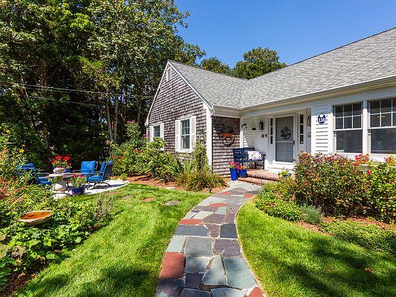 This classically Cape home offers single story living in one of East Orleans' most desirable areas. Architecturally pleasing and recently renovated by the current owners, the dwelling blends vintage aesthetic and modern utility. The interior offers well proportioned rooms and custom finish details. Natural light abounds; the south facing eat-in kitchen is sunny and pleasant with excellent space and storage, great for working chefs or lingering over morning coffee. The living room's glider windows overlook the expansive brick patio, rose garden and the completely private back yard. The formal dining room with wet bar and built -ins adjoins a fireplaced family room. The sleeping wing comprises three bedrooms and three full baths, the primary suite is spacious and privately sequestered from the living areas. The walk-up attic includes an unfinished room above the two-car garage, the full basement has generous storage. Standby generator, new boiler, many updates. Multiple gardens are irrigated by a well for season-long horticultural enjoyment. Nearly at the end of Pochet Road, the tranquil location is ideal for neighborhood walks or enjoying the sound of The nearby Atlantic Ocean.
