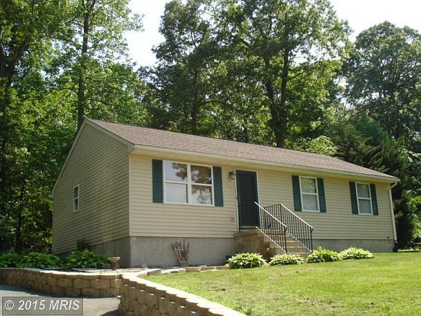 Almost 1500 sq. ft in this cozy, well-maintained rancher sitting across from the entrance of Northwoods development. Three bedrooms, one bath w/new carpet, hardwood floors in the living and dining room, eat-in kitchen, unfinished basement---with some framing to finish. Newer roof (7yrs) , new heat pump (to be installed this week --June 12th) ---public water and sewer. Playhouse in rear yard. Cute!