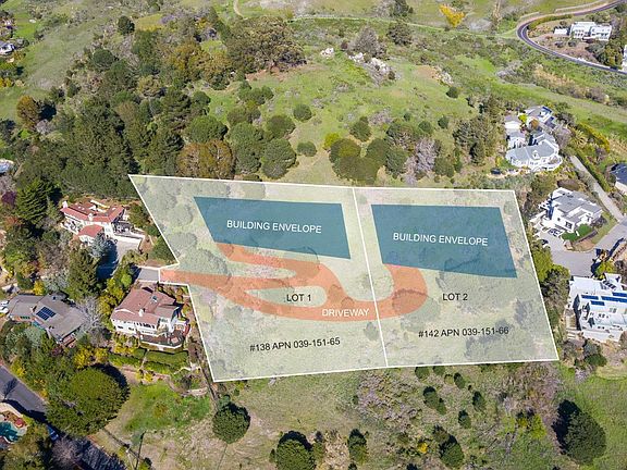 These parcels present an exceptional opportunity to create either one or two exclusive, world-class estates on the coveted Tiburon peninsula. Both properties offer breathtaking vistas of the San Francisco Bay, epitomizing the quintessential southern Marin lifestyle, with convenient access to nature, town amenities, schools, and the city of San Francisco. 138 Rock Hill Drive is oriented towards the north and west, with views spanning from the Golden Gate Bridge to Sausalito, Richardson Bay, and Mt. Tamalpais. This lot is approximately 62,996 square feet +/- (1.45 acres +/- ). 142 Rock Hill Drive is the southern parcel, oriented towards San Francisco, with views of the San Francisco skyline, the Golden Gate Bridge, Richardson Bay, and Mt. Tamalpais. This parcel is approximately 48,166 square feet +/- (1.11 acres +/- ).Privacy abounds, with a large swath of protected open space immediately adjacent and above. Note: There is no structure on either of the lots and the pictures are renderings only. Lot lines and building envelopes outlines have not been verified.
