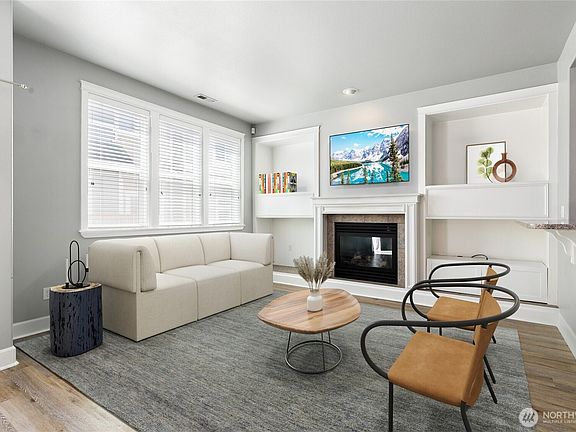 Bright and chic townhome in The Commons at Fircrest! Updated kitchen, with SS appliances, mosaic backsplash & luxury vinyl plank, blends style w/function. Open-concept living room features a gas fireplace & built-in shelving—perfect for books, art, or collectibles. Slider off of sunny dining area opens to a deck for outdoor enjoyment. Private, fenced courtyard ideal for backyard BBQs or dining al fresco. Lower-level flex room is a great home office, gym, or guest suite. Upstairs, you’ll find two primary bedrooms w/en-suite baths & laundry room w/folding counter. With only two owners & meticulous upkeep, this home is move-in ready & boasts a 2-car tandem garage w/storage as well as AC for warm summer days! Plus, transferrable home warranty!