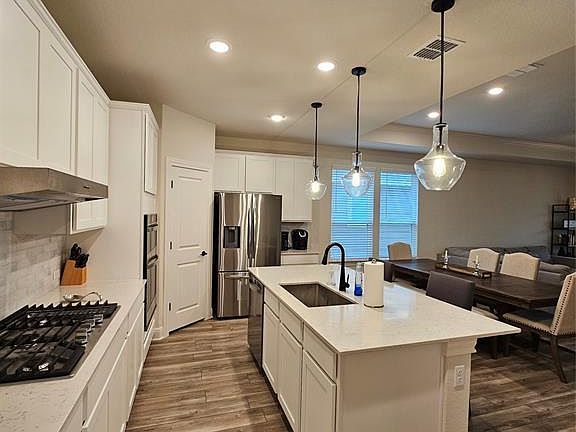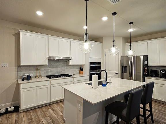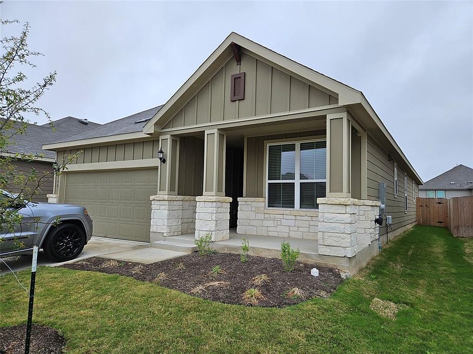 Come enjoy this like new one story home in the highly desirable master planned Sunfield Community! Pulling up to this home you will find a well manicured front lawn and great front porch area-idea for sitting out in the mornings and watching the sunrise. Walking inside you will be welcomed into an open floor plan with plenty of upgrades. The kitchen boasts a gorgeous stainless steel gas cooktop, wall oven and microwave with a large refrigerator included. Kitchen has breakfast area and opens to an oversized living area. Garden tub and his/her sinks in primary bathroom. Lush backyard with back patio boasting plenty of room for entertaining. Sunfield offers the best neighborhood amenities in Buda/Kyle with an Olympic size pool, multiple pocket parks, a catch and release pond, a splash pad, a lazy river and much more! Renters insurance required. Tenant will be responsible for $20/mo air filter program (see app guidelines). $150 admin fee due with the deposit upon lease approval. All co-applicants must complete their apps before the application is considered complete and ready to process. FAST & EASY APPLICATION PROCESS