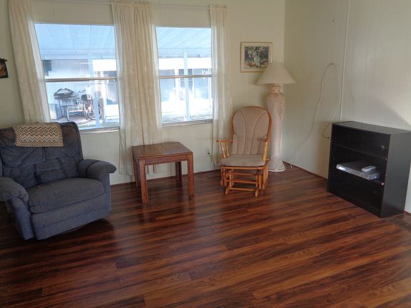 Partially furnished 2/2 56 ft mobile home in a 55+ mobile home community with a 11x14 ft Florida room with AC, 8x10 ft master bedroom, 15x 18 ft living room and 9x9 guest bedroom. It has a 3 year old 3 ton heat pump heating/AC system, shed with washer & dryer, new range and nearly new refrigerator.