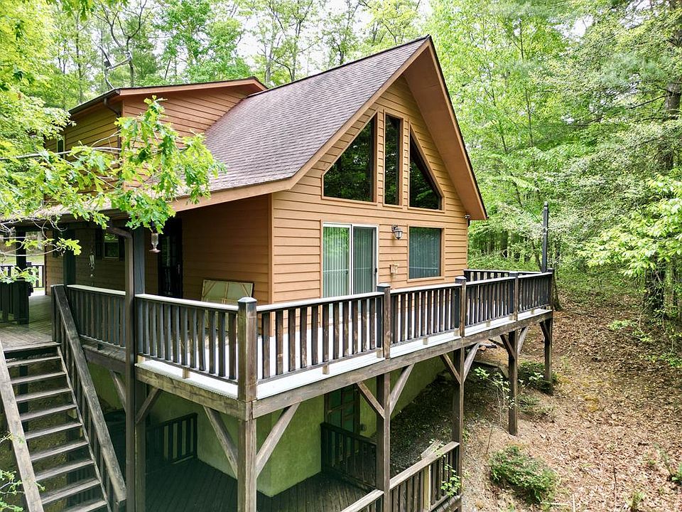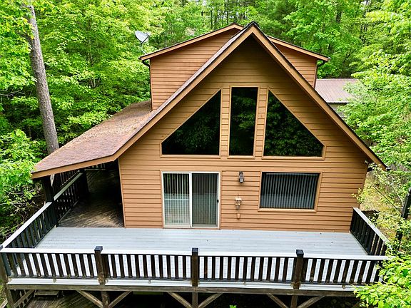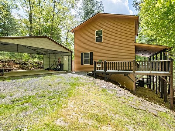 Welcome to your mountain retreat! Nestled in the Tarheel area of Murphy, this chalet has everything you need. Your Great Room has a wood vaulted ceiling, wood flooring and a rock fireplace to cozy up and enjoy a warm evening in the mountains. Your kitchen is equipped with granite countertops, SS appliances, built-in refrigerator, tile backsplash to make preparing meals easy and enjoyable. Around the corner you'll find a handy laundry area with above cabinets, as well as a guest bedroom and bathroom for overnight guests. Upstairs awaits your luxurious Master Ensuite complete with a glass shower and unique vessel sink. Outside is a detached double carport and fenced in backyard. Stand up crawl spaced area for a workshop or storage. This home has so much to offer. Make sure you see it NOW!