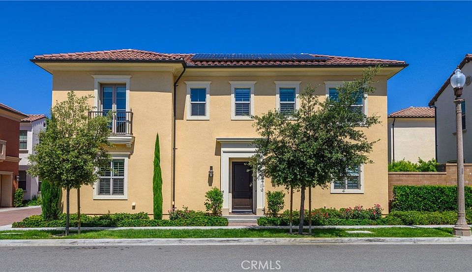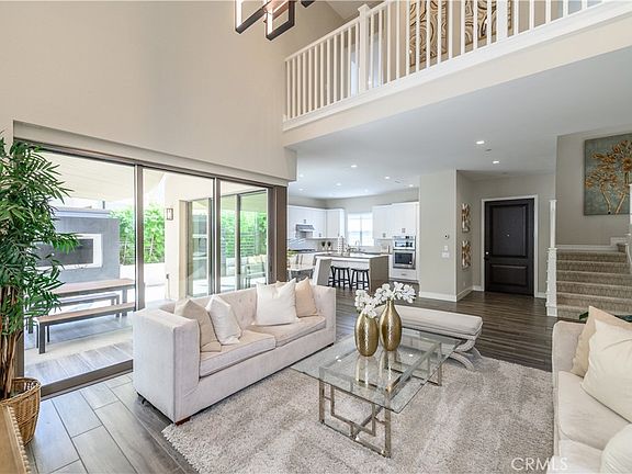 This extraordinary modern Single Family Home boasts seamless Indoor/outdoor living in the most desirable community of Irvine’s Portola Springs. The home offers 4 luxurious suites each with their own bath for privacy and comfort (approx 2432). Designer touches throughout include waterfall island in the gourmet kitchen, high quality porcelain tile throughout the main floor and extending into the backyard. The dramatic vaulted ceiling with geometric LED lighting and Panoramic sliding glass doors offers up the ultimate In/Out living experience. Main floor bedroom with its own bath upgraded with frameless shower door and anti-slip tile flooring. Home features paid SOLAR wifi thermostat, Lutron home automation system for lighting, thermostat and garage door controls via mobile phone. Custom made window shuttles perfect for both light & privacy. The master bedroom offers a stylish coffered ceiling and large walk-in closet. Luxurious master bath with separate freestanding tub and shower complemented by a city light peek-o-view. The stunning backyard is perfect to relax, socialize and enjoy the coastal lifestyle. Award winning school nearby and state-of-the-Art community amenities including pool, parks, playground, sports court and more.