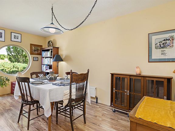 Custom-built Eldorado passive and active-solar charmer with wonderful views and sited on a greenbelt. Seven solar panels installed on the roof in 2012 by Positive Energy. Monthly electric bills average $6. Interior adobe accent walls. Kitchen opens to living room with a wood-burning kiva fireplace. Newer appliances and counters. Modified Bituman roof in 2013 and is under warranty until 2034. Rennai boiler and water heater combo installed in 2017. Two-car attached, direct entry garage - half of which is a workshop. Raised bed gardening on a drip system. Septic inspection has been done and is in attached docs. Corners are flagged. Proper laundry room with a sink and storage. NO CARPET, NO STEPS, NO KITEC. All this on a paved road too, close to school and shopping. Weber Grill conveys with the property.