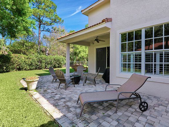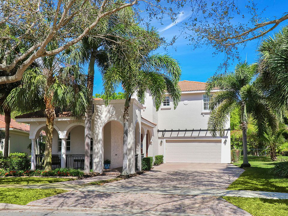 Welcome to Paseos. Located in the heart of Jupiter this beautiful community features 325 single family homes proudly built by Arvida. The community features a large resort style community swimming pool, a tennis and pickleball court, 2 playgrounds, walking/bike trails, large greenspace play areas and more. This 4 bedroom 3 bath Flamingo model home is situated on a private preserve lot with plenty of room for a swimming pool. The main level includes 1 guest bedroom and a bath with formal dining room, living room, eat in kitchen, a family room, a laundry room, two car garage and a large covered rear patio. The second floor includes the master bedroom and bathroom 2 additional bedrooms, the 3rd bathroom and a small loft area. The eat in kitchen features granite countertops, stainless steel appliances and 42 inch cabinets and a pantry closet. The kitchen opens to a generously sized 20 x 14 family room perfect for entertaining. Sliding glass doors off the family room leads to the huge extended covered paver patio and backyard area with plenty of room for play (or to add a swimming pool) that overlooks a private wooded preserve. Additional Features and upgrades include plantation shutters, crown molding, hi hat lighting, a first floor laundry room with sink, hardwood and tile flooring in 1st floor living areas, new carpeting in the first floor bedroom, stairs and upstairs (2023), a covered front porch, an owners suite with tray ceiling and a walk in closet plus a second closet, a large en suite with a separate shower, a separate soaking tub and 2 sinks, newer second level central a/c just 2 years old. Lowest priced home for sale at present in Paseos by far. Do not miss the chance to make this home yours.