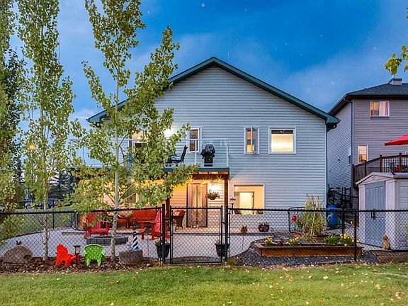 Welcome to your immaculately maintained, lovingly cared-for park-backing and siding walkout bungalow in the wonderful community of West Creek in Chestermere. Offering over 1,900 sq. ft. of developed living space, this home features 4 bedrooms (2 up and 2 down), 3 full bathrooms, a fully developed walkout basement, and an extra-long double attached garage. All the amenities you need are just minutes away including groceries, coffee shops, restaurants, and big-box stores. Families will appreciate the convenient location, with Rainbow Creek Elementary, Our Lady of Wisdom Catholic School, Chestermere Lake Middle School, and East Lake School (French Immersion) nearby. Enjoy the community’s extensive pathway network, parks, playgrounds, and Chestermere Lake for year-round recreation. The main floor showcases an open-concept kitchen, dining, and living area featuring luxury hard surface flooring, updated designer paint, stainless steel appliances, quartz countertops, designer-selected backsplash, cozy fireplace, and large windows that fill the space with natural light. The primary bedroom overlooks the park and offers a spacious ensuite with a walk-in shower, soaking tub, and dedicated makeup area. A second bedroom and full bathroom complete the main level. The fully finished walkout basement offers a comfortable media room, laundry area, two additional bedrooms, and a third full bathroom. The yard is truly exceptional - backing and siding onto a beautiful park with mature trees, walking paths, and plenty of privacy. The upper patio and lower walkout deck create an ideal setting for outdoor relaxation and entertaining, blending indoor comfort with outdoor charm. This is a fantastic family home in a perfect location, ready to welcome its next owners!