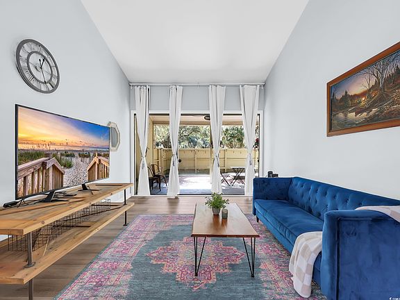 Discover the charm of this rare standalone condo offering the privacy of a single-family home with the convenience of low-maintenance living. Featuring 2 bedrooms and 1 bath, this home is thoughtfully designed for comfort and style. The living area boasts cathedral ceilings, creating an open and airy feel, while large windows invite in natural light. Step outside to your private patio area, perfect for morning coffee, relaxing evenings, or entertaining guests. Wedgefield Plantation is a beautiful community within close proximity to golfing, boating, and more! This community is minutes away from the historic downtown district of Georgetown offering showing and dining via waterfront. *Buyer responsible for verifying all measurements.