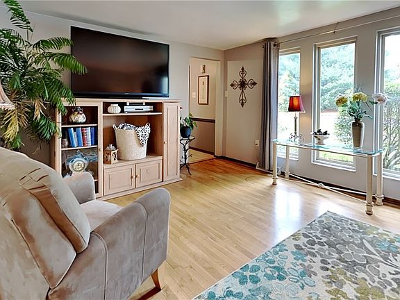 This welcoming home in Brookmeade is truly a delight. Enjoy the summer months entertaining on the deck with retractable awning, cooling off in the 5 year old above ground pool, and spending time with family and friends in the level rear yard. Hardwood and ceramic tile flooring throughout. Living room with a trio of tall picture windows opens to the dining room with chair rail and crown molding. The updated kitchen offers quartz counter tops, oak cabinetry, stainless steel appliances, and tile backsplash. The cozy family room includes a beam ceiling, dry bar, gas fireplace, and access to the deck. Master bedroom with two closets and private full bath with shower. Three additional bedrooms served by hall bath. Lower level with walkout. Upper deck with retractable awning ('22). Lower deck and above ground pool added in '18. Updated asphalt driveway. Level rear yard. Great Ross Township location with convenient access to I-79 at Mt Nebo, I-279 at Camp Horne, and the McKnight Road corridor.