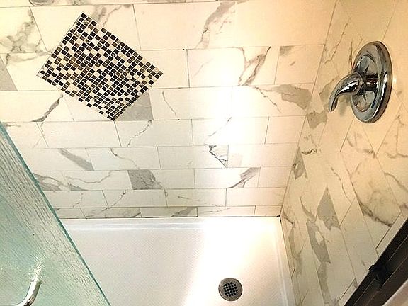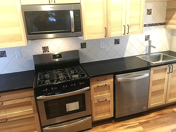 Marble bathroomsBlack quartz countertopsVinyl windowsFully applianced kitchenLaminate flooringCeramic tile backsplash