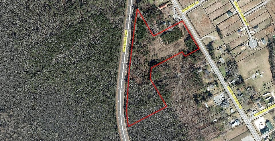 10.39 acre lot in Coinjock, zoned General Business. Approx 1200 ft of highway frontage at the foot of the Knapp Bridge and Approx 350 ft of road frontage on Worth Guard. 16,000 sq ft footer poured and in place on the property. Large lot with endless options, less than half a mile from the IntraCoastal Waterway.
