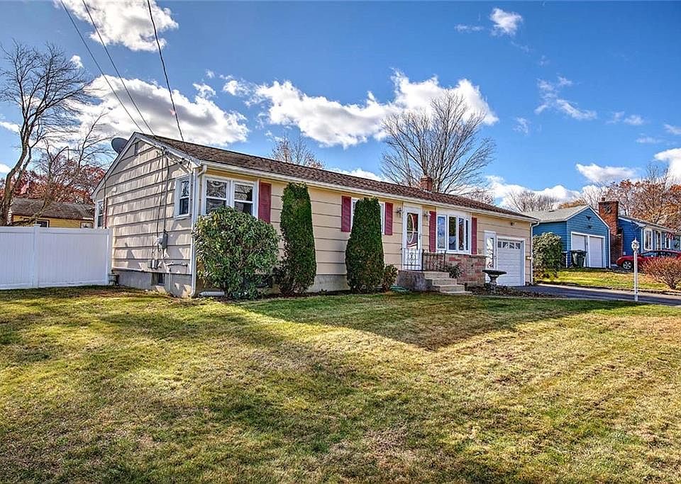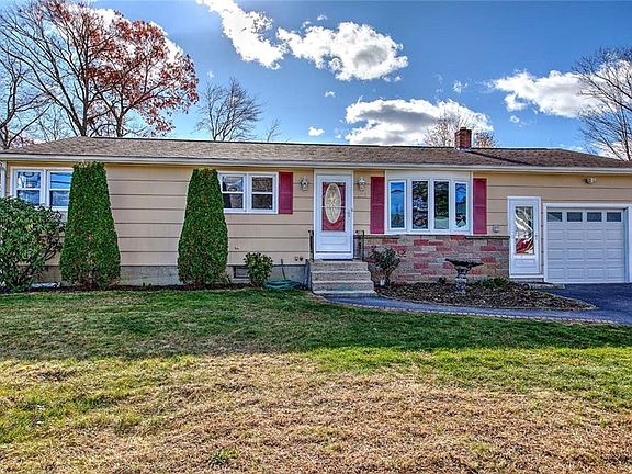 The ultimate location for rural charm close to city fun! This classic Ranch-style home completely repainted this year offers 3 large bedrooms and 1 full bath with an updated tub and surround installed December 2023. An inviting living room at the entry gets the party started, while the new rear deck adds more engaging space to entertain. Hardwood floors throughout the home and bedrooms lend a feeling of warmth. The eat-in kitchen offers sleek styling with stainless steel appliances, a fridge installed January 2024, and granite countertops. Delight your guests in the private, fully fenced-in yard with a lovely stone-surround fire pit. There is also a full-sized basement with laundry and extra storage space with a boiler installed 2022. The home features a large driveway that can fit 4 cars and an attached 1-car garage with new opener installed December 2023. Enjoy Coventry's natural beauty and explore Tiogue Lake or walk the local bike path. Shop and dine at the Centre of New England or along nearby Route 2. You'll be 25 minutes away from Providence nightlife, culture, and dining.