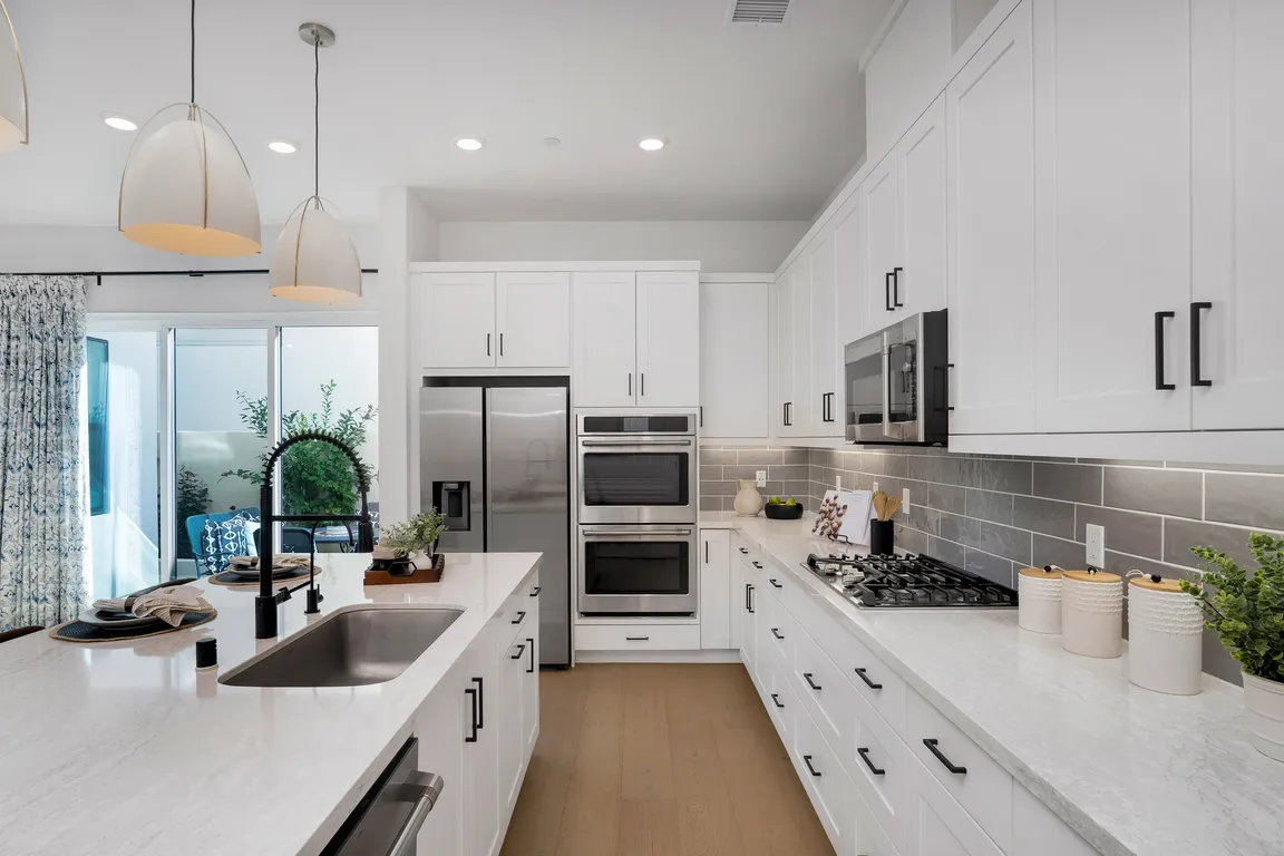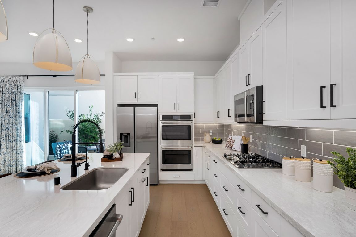 Chef-inspired kitchenLarge walk-in closetSoft-close white cabinetrySleek quartz countertopsDesigner tiled backsplashCustom plantation shuttersRich hardwood floors
