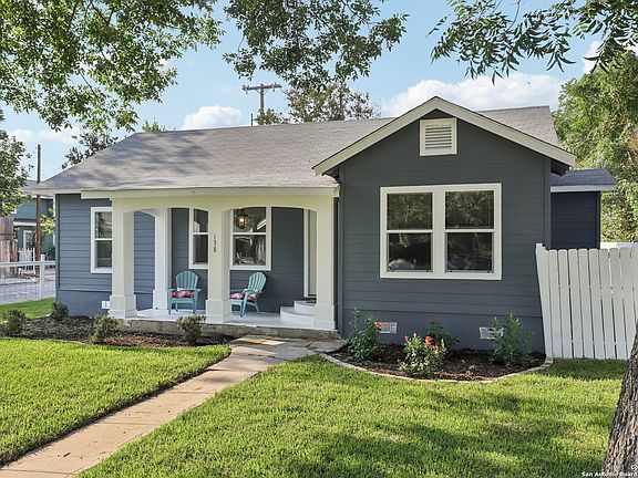 This adorable corner lot home has been updated from top to bottom and is ready for its new owner! Enjoy your morning coffee on the inviting covered front porch, surrounded by a newly sodded and fenced front yard. Step inside and be welcomed by new luxury vinyl flooring that flows throughout the home. The spacious living room features a built-in bookshelf for added character, and the open kitchen is perfect for entertaining. It boasts butcher block countertops, crisp white cabinets, and white appliances. The adjacent dining area is warm and inviting. The spacious primary bedroom is a true retreat with plenty of natural light, a ceiling fan, and a walk-in closet. The ensuite bath provides a spa-like feel with beautiful ceramic tile surrounding the shower/tub combo. The two additional bedrooms are also generously sized with their own closets and ceiling fans. Out back, you'll find a private, fully fenced yard and a deck perfect for grilling and gathering. The property also includes a long driveway and an oversized, detached 2-car carport. Recent updates for peace of mind include a new roof, siding, electrical panel, and foundation work, along with all the interior cosmetic updates-flooring, baseboards, paint, and updated bathrooms. This home is a fantastic find, blending charm, modern updates, and a great location! Located just South of Southtown, minutes from 281/37 and I-10. Close to the riverwalk, downtown San Antonio, restaurants, shopping and grocery stores!
