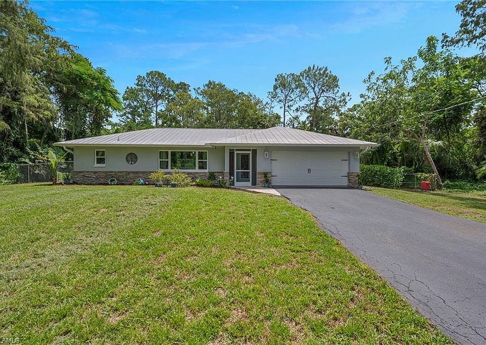 Discover the perfect fusion of upgrades, privacy, and prime location! Set on 2.61 acres of 100% uplands, this move-in-ready 3-bedroom, 2-bathroom ranch-style home offers a serene retreat just minutes from Collier Blvd., with easy access to Naples’ premier shopping, dining, and beaches. Updated between 2018 and 2023, the home features vinyl flooring throughout, a stunningly remodeled kitchen with quartz countertops, a coastal-inspired backsplash, and white cabinetry with soft-close hardware. Enjoy added durability and style with a custom front door, impact doors and windows, a new 2-car garage door, a metal roof, solar-powered attic fan, recently serviced septic tank, rain gutters, and a new Rainbird irrigation system ensure efficiency and low maintenance. Relax in the naturalistic beauty of the expansive grounds from the screened lanai, complete with a fully functioning hot tub and convenient pool bath. This property offers you room to add on, whether it be a pool, guest house or outbuilding. And park all your vehicles and toys. Designed for both everyday comfort and tranquil Florida evenings, this Naples gem seamlessly blends modern sophistication with peaceful country living. ENVIRONMENTAL / DEP REPORT available.