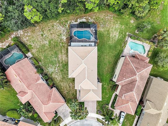 BEAUTIFULLY UPDATED, PRISTINE North Naples POOL home, 4BR+DEN, RENOVATED KITCHEN, FLOORING, & BATHS! CULDESAC LOT, HUGE YARD backing to woods, & interior freshly painted! Unique Pool cage with upper deck off Master Bedroom where you can enjoy views of the pool and the woods while you sip a beverage or read a book! Light, bright interior with modern neutral accents and updated light fixtures. Convenient first floor DEN allows for a private workspace away from the bustle of the Kitchen/living areas. All 4 bedrooms are upstairs, including a spacious Primary suite with your own private balcony overlooking the pool and backyard, and views of the community lake! This home is in pristine, move-in condition! Beautifully decorated and furnished, and the Seller is willing to negotiate the furnishings separately, as well. ROOF has just been power-washed!! "Saturnia Lakes" Community Clubhouse and Amenity Center offers endless activities that will appeal to all ages, with 2 pools, Kids play pool & playground, Lap pool, putting course, Tennis, Basketball, Pickleball, Fitness center, Pool tables, Card & game room, Grand Ballroom, Sauna/Spa, Internet Cafe, walking paths, and HOA office onsite! Quick drive to the beautiful Gulf Beaches and Sunsets!! This is SOOO much more than a home, this is a lifestyle that you will want to enjoy!!
