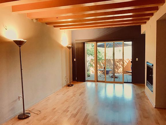 The available unit is located in Ricardo Legorreta s famous Northside Santa Fe Complex. It has 2 bedrooms and 2 full baths with wood laminate flooring throughout and tile in the kitchen and bathrooms. Gas Stove/Convection Oven, Gas Fireplace & W/D. Clubhouse, pool & year-round jacuzzi, gym & walking trails. Walking distance to Thornburg Campus & Los Alamos Shuttle Service. Minutes from Devargas Mall, downtown & SF plaza. The unit is well suited if not ideal for one or two people with a mature well-behaved dog. Base Rent is for one to two people and does not include pet fees/rent. Pet rent is $50/month. 12 month lease terms include first and last month's rent as well as a security deposit.