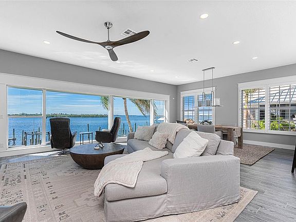 If a jaw-dropping view is number 1 on your list of "MUST HAVE'S" then look no further than this gorgeous FULLY FURNISHED TURNKEY WATERFRONT condo, located in Mariner Village, a small boutique condo community consisting of only 3 buildings with 4 units each. This delightful condo is less than a mile from Englewood Beach, well known for it's white sandy beaches! There's really nothing left to do in this condo, with all of the tasteful and recent updates. From the moment you walk in the door, you will be wow'd by the awesome wide view of Lemon Bay and the Intercoastal Waterway. The very open floor plan, with a combination living/dining area, features a high ceiling & glass windows across the entire end of the room. (with electric roll down shutters) From this vantage, you look directly down at deep water Boat slip #60, which is included with the sale of this condo. The chef's kitchen boasts high end cabinetry w/under counter lighting, full extend/soft close doors and drawers, decorative backsplash, granite countertops and breakfast bar. The walk in butler's pantry provides plenty of room for all of your kitchen gadgets and food items. Appliances include: induction cooktop, built in convection oven, French door refrigerator, and dishwasher. (all stainless Kitchen Aid). There's even room for a small dinette with a couple of chairs in the kitchen. Stylish Ceramic plank tile flooring has been installed throughout. The master suite has two walk in closets, tray ceiling and ceiling fan, and ensuite bath, with stand out features like the freestanding tub, double basin granite countertop, and Roman Shower. The spacious guest bedroom also has a tray ceiling and ceiling fan, plus wall closet. The guest bath is handily located and has a walk in shower, and vanity w/granite countertop. The laundry closet allows the washer and dryer to be tucked away. All interior doors have decorative moulding around them, not to mention the 4 1/2" baseboard. The one car garage and tandem one car carport provides adequate parking. Boat slip #7 is also included - this slip would be perfect for your back bay flats boat, while keeping your larger boat at slip #60. Each of the 3 buildings in Mariner Village have their own private pool for just those 4 units! In addition to the beach being close by, there are numerous restaurants, beach shopping, watercraft rentals, and sightseeing opportunities to explore! This is a must see if you are looking for a WATERFRONT CONDO!