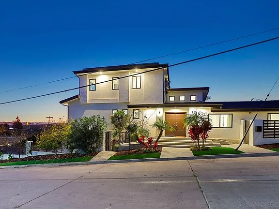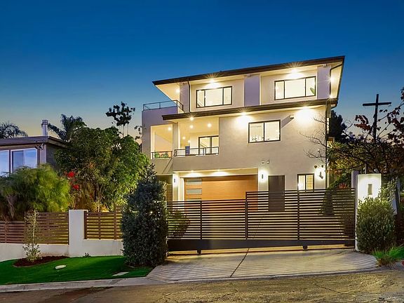 The epitome of coastal living. Welcome to Bay Park! Unobstructed ocean views from Point Loma to Mount Soledad. Totally redesigned and remodeled in 2018, this home features an elevator with access to garage level, main level and top floor primary bedroom. This modern home has a very open floor plan, accentuating the views providing seamless indoor outdoor living. The main level of the home features a professional kitchen with custom cabinetry, granite counters, high end stainless steel appliances and a 6 Burner stove and hood. Three bedrooms are constructed on the main level of the home with one junior primary suite and two additional bedrooms and hall bathroom. The lower level features a 2 car garage, bathroom and optional bedroom/office. The top level features a primary suite with a private balcony overlooking the ocean view, sitting room, and bathroom with elevator and stair access. Additionally, the home has a remote controlled gated entry at the sidewalk with room to park 3 to 4 vehicles as well as the garage spaces. Brand new backyard space includes pebble-tec salt water spa/pool with baja step, jets, fountains, lighting system, solar powered electric and gas powered heaters, firepit patio deck, gardens and fruit trees. Other mechanical and technologies include electric fully paid solar panel power system (24 panels), brand new tankless water heater, wired security system and cameras, fiber optic wiring to each room throughout the home and smart wifi system to control pool and lighting. New turf in front and back yard gardens complete the home. Ready to enjoy!