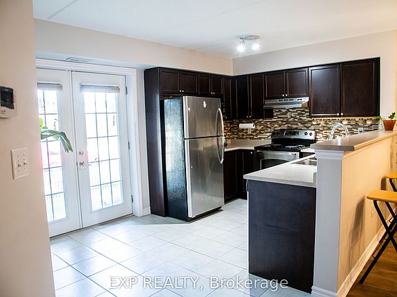 Newly Renovated Corner Unit Features 2 Beds, 2 Full Baths And 2 Parking Spots. Spacious Open Concept W/Stylish Kitchen And Walkout To Private Open green space. Brand New High End Laminate Throughout. Oversized Master W/Ensuite. Quiet Bldg Close To Parks, Schools, Go, Hwys & All Amenities. It includes 1 owned underground parking and 1 parking with permit. Access to gym and party room.