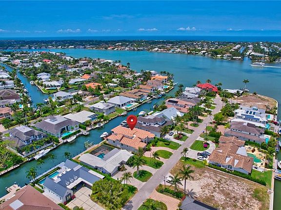 Premium waterfront location in Royal Harbor, conveniently located on a quiet street in Royal Harbor this home is over 4100 square feet and has an amazing outdoor space. The new owners will love relaxing in the black bottom pool with infinity edge overlooking its dock, canal and southern rear exposure. The neighborhood is close to everything Naples has to offer and is full of active residents, enthusiastic boaters. Take advantage of complete first-floor living with the benefit of additional square footage on the second floor. Upon entry you will find multiple large living spaces, a spacious primary bedroom, two additional ensuite bedrooms, a study, formal and informal dining, large kitchen, powder room, laundry. As a BONUS, the second story is perfectly set up to be a custom guest suite for your visitors with a large bedroom, bathroom, huge bonus room and balcony with bay views. The back of the home offers outdoor access to the outdoor kitchen, screened lanai from end to end giving views of the deep water canal and a 13,000 LBS. boat lift. With a base floor elevation of 10 feet, the home has never had any flood water inside the residence. Boaters will quickly hit the Gulf Waters via Gordon's Pass in approximately 12 minutes. Royal Harbor makes up the East shoreline of Naples Bay. Residents can quickly be to downtown in a 1.5-mile bike ride or to the white sand beaches in less than 2.5 miles. Other convenient destinations include the Bay Shore Arts District, Baker Park, Botanical Gardens, as well as all of the shopping conveniences of daily life. This well-maintained home is priced to sell and ready for personal touches of a new owner.