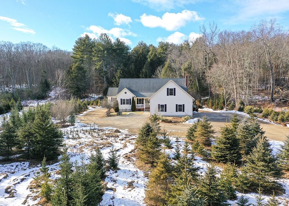 Incredible opportunity to live on your own Christmas Tree Farm in Central Mass! Custom built, one owner home offering a HUGE first floor layout allowing for spacious single level living w/2 room primary suite w/deck access via sliders, including a full bath w/walk in shower. Gleaming hardwood floors throughout your living room & dining area w/sliders to your 2 level back deck, cabinet packed eat-in kitchen w/granite counters, center island w/pull outs, plus breakfast bar seating for 4+. Another bedroom, 2nd full bath, laundry room and garage access (3 bay doors) finish off the main level. Upstairs you'll find full bath #3, bedrooms 3 & 4, plus a MASSIVE walk in attic w/loads of potential to finish and add more living space. The full WO basement (unfinished) also offers unlimited potential to finish - future workshop/media room/office/exercise space? Wood stove, 2 oil tanks, private water & septic - all this on just over 5 acres - just 3 minutes to Dean Lake & Pine Acres Campground!