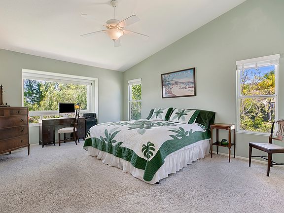 Natural light flooding in from skylights and massive picture windows on the main floor. The home lives like a single story with a master bedroom featuring vaulted ceilings and a large private deck. The gorgeous updated kitchen just steps away is detailed with a travertine backsplash, large granite countertops, and adjacent dining. Great open floor plan with sightlines looking out to mountains in the distance. The backyard is the perfect place to host a BBQ on the patio or enjoy the private jacuzzi!