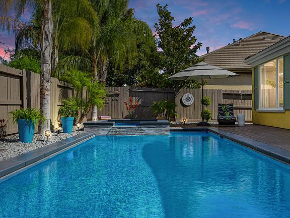 This stunning MINT condition home will check all of the boxes for you. It has a gorgeous backyard & a lovely pool and spa. This home has owned solar, 8 Kilowatts, NO electricity bill for SEVEN years. Fresh, modern, and truly move in ready, it offers 2,222 sq ft of beautifully updated living space with a 3 car garage. Inside you will love the fresh calming colors on the walls that create a warm and inviting atmosphere. The home has been remodeled with care including the kitchen, master bathroom, and flooring. The bright open layout features a gorgeous kitchen with white cabinetry, sleek hardware, quartz counters, a large island, stainless appliances, and a bold black tile backsplash. Luxury waterproof vinyl flooring, crown molding, surround sound, updated lighting, whole house fan, & newer exterior paint. The family room overlooks the incredible backyard. The master bedroom includes a slider door leading outside. The backyard is a resort style retreat with a pebble tec pool, spa, Trex decking, tropical landscaping, a cabo shelf, and a covered lounge for relaxing or entertaining. The 4th bedroom was expanded but can easily convert back. As part of Lincoln Crossing, enjoy amenities including internet, a fitness center, spa, indoor court, tennis courts, and indoor and outdoor pools.