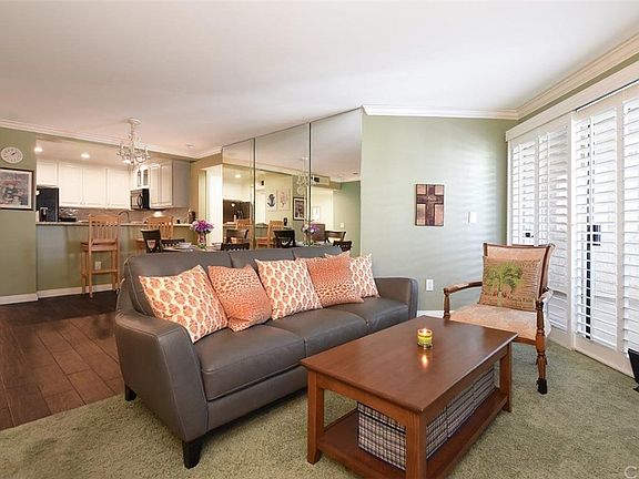 Remodeled 2 bed 2 bath one level condo in the desirable Harbour Walk community! This home is move in ready starting with a custom kitchen that includes bright white cabinetry, granite counters, natural stone back-splash and stainless steel appliances. There is a pantry right off the kitchen for extra storage. Spacious living space features a marble fireplace, dining area, Plantation shutters and sliders that lead out to a balcony. Beautiful "wood like" tile creates a warm feel throughout the entry, kitchen and dining area. This open floor plan has the living area & kitchen situated between the en-suite bedrooms which allows for more privacy. Custom carpeting is in the bedroom areas. One balcony has a spacious storage closet. Indoor stacked laundry is a nice convenience. Other features included Central air conditioning, smooth ceilings, elegant crown molding and baseboards. Community pool area includes a banquet room, barbecues and spa. Two parking spaces are Parking garage #1, 507 & 518(across from each other). Harbour Walk is located just 1 block from shops and restaurants. 110 Freeway access is convenient. Harbour Walk is undergoing cosmetic improvements and will be completed in a few months. Be the next new owner to have all the benefits of an updated building without the cost!