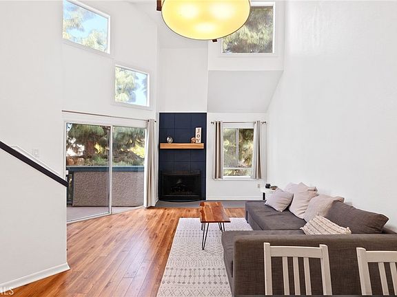 Experience the rare to the market layout of this attractively updated penthouse - top floor 2 bedroom, 2 bathroom condo in the impeccably maintained Harbour Walk community. Step inside to immediately witness the stunning vaulted ceilings with incredible natural lighting, durable laminate wood flooring and charming stone framed gas fireplace. Enjoy cooking in the openness of the kitchen with natural stone countertops and flooring, counter bar, stainless steel appliances, great upper and lower cabinet space while still spending quality time with others and entertaining in the open layout large living space. Retreat to the secluded master bedroom with a sizable walk in closet, balcony access and updated en-suite bathroom including new tiling, trendy concrete overlay flooring and spacious vanity countertop. Spend time soaking up fresh air and relaxing on the private balcony surrounded by a scenery of green trees. Take in the views from the upstairs bedroom with a custom staircase and railing, private, updated, and charming shower, vanity and mirrored sliding closet doors. An in unit stackable washer and dryer will make completing laundry an ease. Newer HVAC system and LED recessed lighting. Stow away items in the wonderful storage spaces underneath the stairs and the balcony multipurpose closet. 2 dedicated indoor parking spaces near elevator within the private access and gated community garage - plenty of visitor parking spaces too. Walk the lush grounds of Harbour Walk community with many amenities including a large pool, spa, lounging deck, poolside bbq’s, sauna, and community room. A tremendous location with conveniently quick access in and out of San Pedro and close proximity to shopping centers, restaurants, freeways for commuters, and the desirable Taper Avenue Elementary S.T.E.A.M Magnet School. A stylishly updated top floor layout with sought after cathedral ceilings and wonderfully bright natural lighting does not come to the market often, so come view these amazing features for yourself soon!