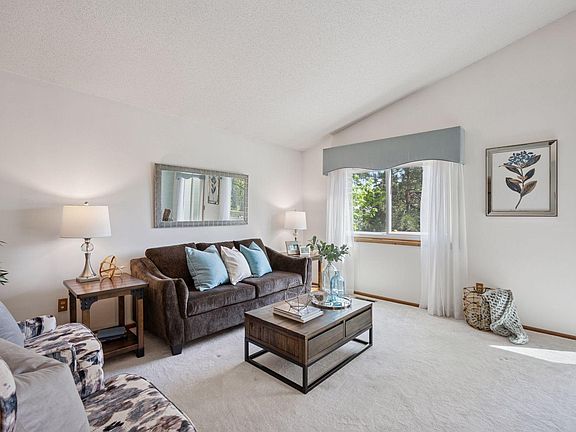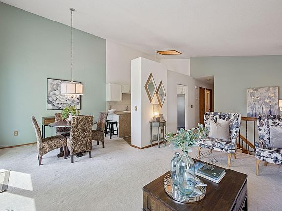 LOCATION~LOCATION. Welcome to this townhome located in the heart of Maple Grove. Perfectly positioned within walking distance to restaurants, scenic trails, grocery stores, pharmacies, and more! Step inside to discover a spacious open floor plan with dramatic vaulted ceilings. The kitchen features a breakfast bar that can expand for meal prep space or entertaining guests. Enjoy easy access to the deck from the dinette, enhancing outdoor relaxation and entertainment. The primary suite offers a vanity dressing area and a spacious walk-in closet! The lower-level walk-out is newly carpeted, offering additional living space with great flexibility. Garage with storage racks. This townhome is designed for both comfort and practicality.