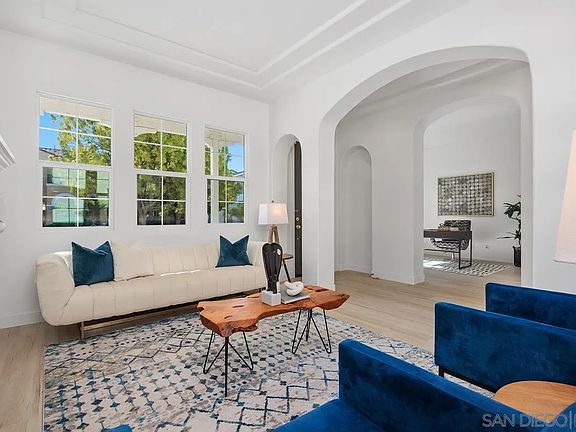 Your holiday retreat awaits! Thoughtfully remodeled and meticulously maintained with care, this home blends comfort and style. Soaring vaulted ceilings and an effortless open layout create a bright, inviting atmosphere. The custom-designed kitchen and bathrooms bring together elegance and functionality. Countless upgrades throughout— new flooring, new kitchen, new paint and etc. low HOA and Mello-Roos. Conveniently close to park, schools, shopping, dining, and freeway access. Don't miss it! Spanning 3,670 sq. ft., this home is designed with both flow and light in mind, thanks to expansive windows and soaring ceilings. Inside, you’ll find 4 bedrooms and 4.5 baths, along with flexible spaces including a private office and an upstairs bonus room—ideal for a media room, playroom, or additional bedrooms. The kitchen combines function and style, featuring upgraded cabinetry and timeless quartz countertops. Convenience abounds with an upstairs laundry room and a secure 3-car garage behind a wrought iron gate. Just steps from the community park and within the award-winning Poway School District, this residence offers easy access to Pacific Highlands shopping, nearby freeways, and San Diego’s pristine beaches. With a modest $300/month HOA + Mello Roos, this property delivers both refined living and exceptional value.