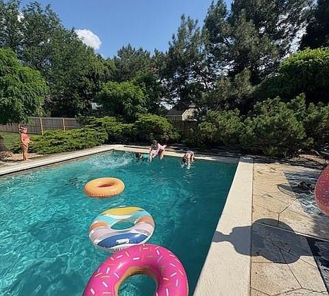 Pure Paradise in the heart of Leawood! Welcome to this stunning mid-century modern, 1.5 story home set on an expansive .87 acre lot! This property offers a true backyard retreat with a GORGEOUS in-ground pool! Step inside to find beautiful hardwood floors throughout the main level and a layout designed for both comfort and entertaining. The dining room flows seamlessly into the main living area, highlighted by a floor to ceiling stone fireplace. The light and bright eat-in kitchen features stainless steel appliances, tons of countertop/cabinet space and breathtaking views of your private outdoor oasis. Off the kitchen you'll find a cozy office/sitting room that also overlooks the patio/pool area! Tucked away on the main level is the large primary bedroom featuring its own ensuite bathroom with direct access to the pool, for the ultimate convenience. Another bedroom, laundry/mudroom and full bathroom complete the main level. Upstairs, you'll find two additional bedrooms connected by a jack-and-jill bath, plus a loft area ideal for movies, video games or a quiet reading nook. The finished lower level features a media space, tons of storage/closets, full bathroom with built-in sauna, large bar area with plenty of room to host family and friends. Outside is the true showstopper, your very own resort-style retreat featuring a sparkling in-ground pool, lush landscaping and complete privacy on nearly an acre! Located in the award winning Blue Valley School District and just minutes from Prairiefire with its endless shopping and restaurants! This location can't be beat! Don't miss your chance to own a slice of heaven (on almost an acre!) in Leawood!