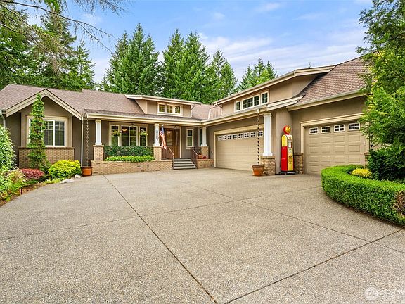Immaculate custom home inside the gates at Canterwood Golf & Country Club. Over 5,400 square feet of thoughtfully designed living space - this daylight basement layout provides a perfect balance of comfort and style. Elegant entrance leads to a spacious main floor great room with soaring 10’-foot ceilings, stunning millwork and hickory hardwood floors throughout. Well-appointed kitchen with granite counters, large central island, eating nook and pull up bar top. Main floor primary suite with WIC and private bath. Incredible lower-level rec room opens to a private backyard with in-ground heated pool. 2nd utility room & kitchen on the lower level. 3 car attached garage with epoxy floors and a versatile workshop above it. Rock solid home!