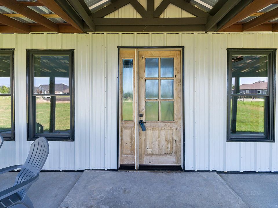 Unique opportunity to finish your dream Barndominium nestled on 2.4 acres at the end of a quiet cul-de-sac. With approximately 5,250 square feet of space, this unfinished home is built to impress—and to withstand 160 mph winds. Inside, you'll find an open layout connecting the family, dining, and kitchen areas, complete with a massive pantry, butler’s pantry, and a spacious mud and utility room. The potential for 2 to 3 bedrooms includes roomy closets, loft space, and game room that can double as a bedroom. Enjoy large bathrooms, bead board ceilings, and a wraparound porch perfect for taking in peaceful, country evenings. Hurricane shutters are included for the glass garage door. The huge warehouse opens the possibility for entertaining—maybe your future event venue? The property also includes a balcony and tankless water heater. A 692 foot well and septic systems are already in place. This rare find blends privacy, potential, and practicality with a whole lot of charm. Welcome home!