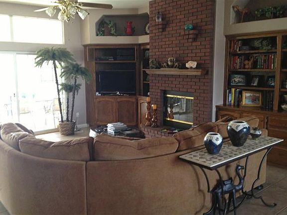 Spacious and Charming Home! This custom floor plan is a 4 bedroom with the 4th bedroom being used as an office without a closet. The kitchen has an island with a great view of the waterfall pool. Custom California Closets, the master suite has a fireplace and jetted tub. The backyard with RV parking, 3 car garage with full cabinets.