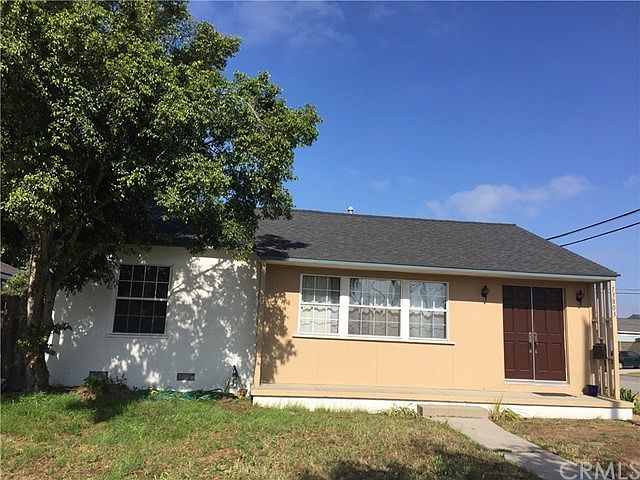 Large corner lot . Freshly painted. House been converted to a two two bedroom with a large living room also has two car garage.