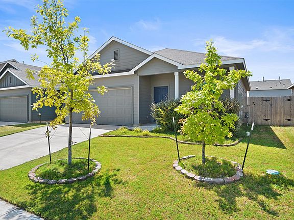 This thoughtfully upgraded 3-bedroom, 2-bath home offers a perfect blend of style, comfort, and convenience. At its heart, the kitchen stands out with rich espresso cabinetry, quartz countertops, and stainless steel appliances including a gas range, refrigerator, and washer/dryer combo that convey. The open-concept layout flows seamlessly with luxury vinyl plank flooring throughout the main living areas, complemented by a spacious breakfast bar ideal for casual meals or entertaining.  Notable upgrades include a full sprinkler system, in-wall pest control, and a water softener for added comfort and peace of mind. Just a short stroll from your front door, the Elm Creek Amenities Center offers a community pool, playground, and pavilion.  And when it comes to location, you’re covered: less than 3 miles to HEB and Walmart, and within a 30-minute drive to Downtown Austin, the Airport, Tesla, and the Samsung facility in Taylor.