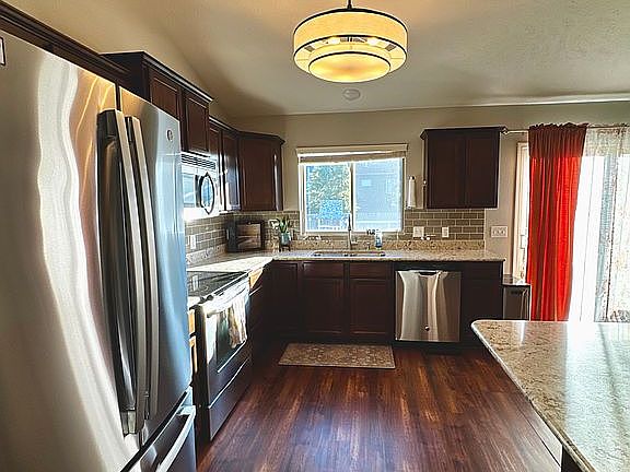 Fully fenced in yardDining areaNew deckSoaring ceilingsStainless steel appliancesEat in breakfast bar