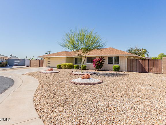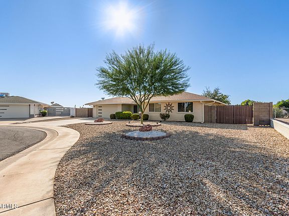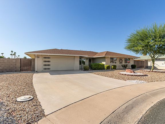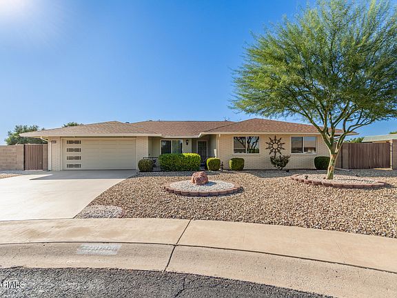 You'll love this beautifully maintained 3-bedroom, 2-bath home in the heart of Sun City, AZ, an active adult community that offers an unparalleled lifestyle. Situated on a fully walled 1/3 acre cul-de-sac lot, this home also includes a pebble-finish pool, perfect for enjoying Arizona's sunshine. Inside you'll find a bright living room/dining area; and a separate family room, from where you step out into an enclosed patio to view your pool & spacious yard. The updated eat-in kitchen has granite countertops, SS appliances, ample cabinet space, and lots of drawers! The home also has dual-pane windows, newer HVAC system, & newer roof. The extra-deep garage offers plenty of room for storage with built-in cabinets, making organization a breeze. Put this one on your must-see list today!