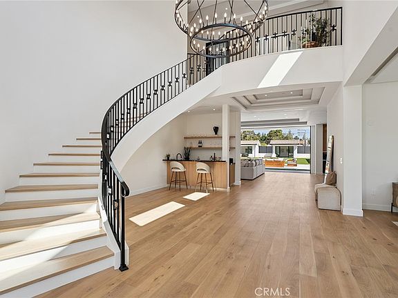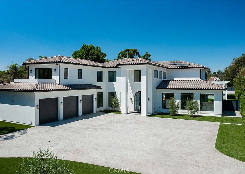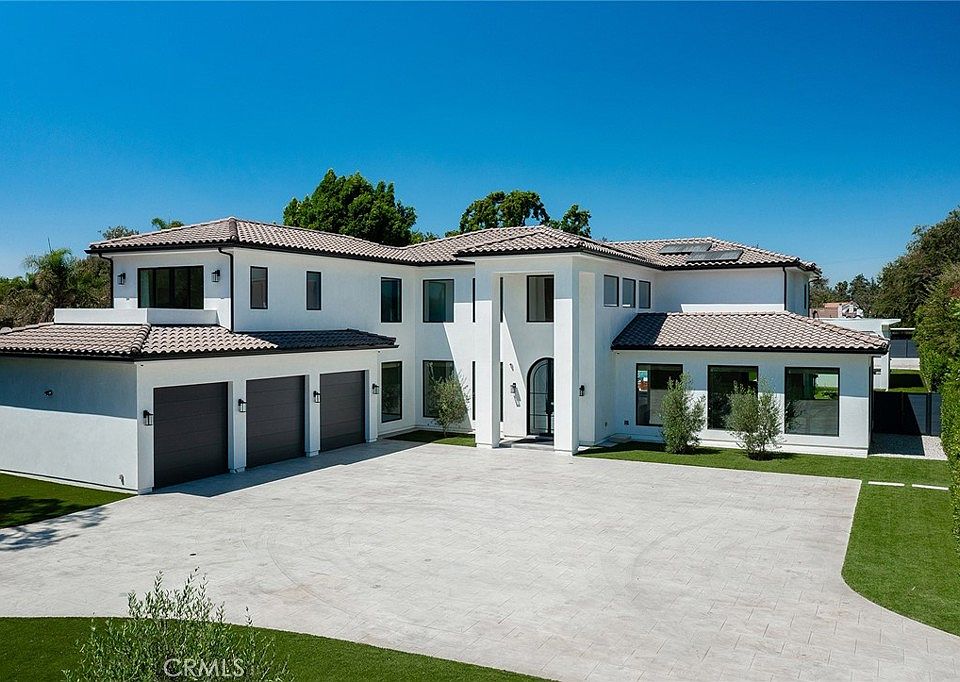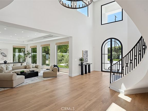 Welcome to this stunning newly constructed estate in the exclusive Weddington Estates enclave of Sherman Oaks. Set behind private gates on a sprawling corner lot, this home blends luxury, comfort, and smart living with effortless style. Featuring 5 spacious bedrooms and 4.5 luxurious bathrooms, the residence showcases white oak flooring, sophisticated smart home technology, and exceptional indoor-outdoor flow—perfect for entertaining. Step through custom arched iron double doors into a light-filled, open-concept layout designed for grand living. The formal living and dining areas unite into a dramatic great room with expansive windows that flood the space with natural light—ideal for both hosting and relaxing. The gourmet chef’s kitchen is equipped with top-of-the-line appliances, a built-in Thermador refrigerator and freezer, full-size wine fridge, and a butler’s pantry. It opens to the inviting family room, complete with a sleek fireplace and oversized Fleetwood pocket sliding doors that lead to your private, resort-style backyard. The main level also includes a media room, custom wet bar with wine fridge, and a versatile guest suite with en-suite bath—perfect for visitors or in-laws. Upstairs, you'll find three generously sized bedrooms, including two en-suites with custom walk-in closets. The primary suite is a luxurious retreat with pocket doors that open to a private balcony, his and hers walk-in closets with built-ins, and a spa-inspired bathroom with dual vanities, an oversized soaking tub, and a double rainfall shower. A conveniently located upstairs laundry room adds functionality. Outdoors, the resort-style backyard is designed for unforgettable gatherings. Enjoy a sparkling pool and spa, two enclosed recreation cabanas, a putting green, and two covered patios—including an oversized space with a fully equipped outdoor kitchen and BBQ area for the ultimate open-air lounge experience. This backyard is a true entertainer’s dream. Smart home automation powered by Control4 provides seamless control of lighting, integrated sound system including sonos, climate, pool, spa, and more—delivering unparalleled comfort, convenience, and modern luxury throughout. This estate also caters to the car enthusiast, featuring a spacious 3-car garage, three separate gated entrances, and an expansive driveway that offers ample parking for multiple vehicles.