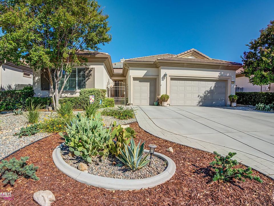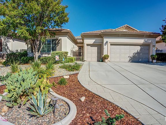 Solera @ Kern Canyon - a gated 55+ community with resort-style living. This popular split wing floorplan has 2 bedrooms plus office/den, 2.5 baths. Great room with fireplace open to dining area and kitchen. Luxury vinyl flooring throughout except guest bedroom; tile in kitchen, laundry &baths. Kitchen w/island, pantry, lots of cabinets. Shutters, 2'' blinds & fans throughout. Primary suite w/soaking tub, large shower, 2 sinks, large walk-in closet. Indoor laundry w/sink & cabinets. 2 plus golf cart garage with California Closet cabinets & newer garage door openers. Newer AC unit, paid Solar panels. Water-saving newer dry-scape landscaping in front yard; relax and entertain in the easy to maintain backyard with covered patio & extended concrete & slate-rock pathway, plus 5x6 shed. Enjoy the community amenities including clubhouse with gym, pool, spa, tennis, pickleball & bocce courts plus lots of clubs and activities.