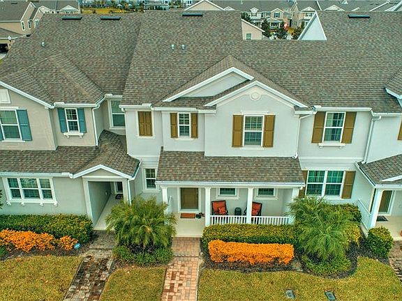Location Location Location!!! Well-maintained Luxury Windermere Townhome. Located in Vineyards of Horizon West. Floor to ceiling upgrades from larger tile flooring to 42 inch kitchen cabinets. Walking up to the front door you have a large covered front porch facing towards Disney with a water view. The home's living room features tall ceilings and an open concept going into the kitchen and the dining room. The kitchen has a huge island, custom backsplash and lots of cabinet space. Theres crown molding throughout the downstairs, a walk in laundry room with custom built-in cabinets. The two car garage has epoxy flooring and built in cabinets, with an upgraded water heater. There is also a fenced in lanai with upgraded pavers. Going upstairs the flooring is Berber carpet from the stairs and into the bedrooms and tile in the bathrooms. A large master bedroom and bathroom with walk-in closet, upgraded shower and upgraded granite countertops. The upstairs also includes a foyer and two bedrooms besides the master. All bedrooms have recessed lighting and ceiling fans with plantation shutters. A few more upgrades include Roman shades, solar barrier in attic and slide out kitchen cabinet drawers. This is a must see home.