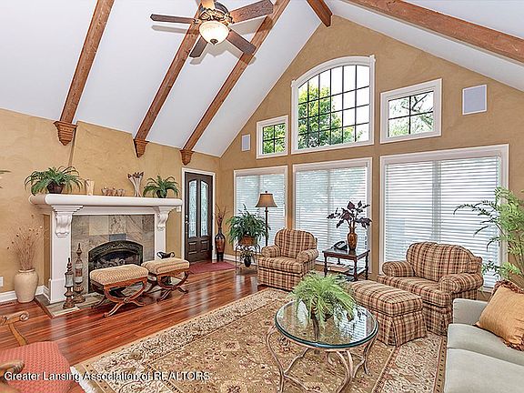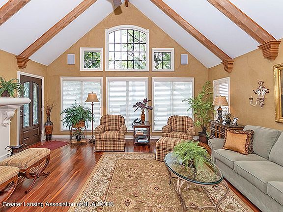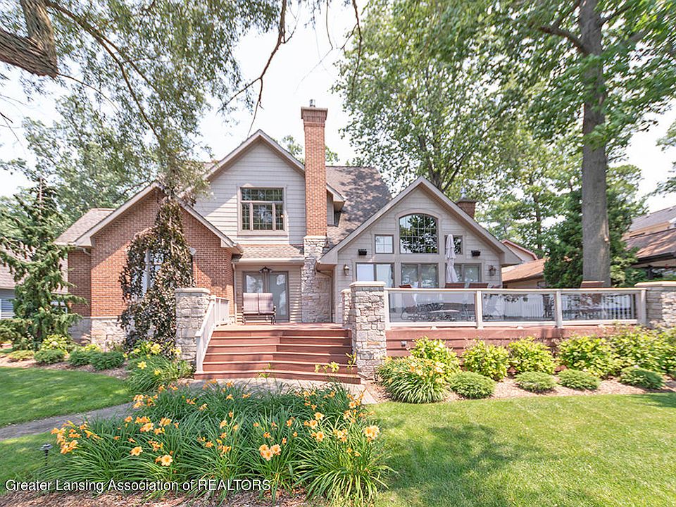 This custom built lake front home features 5 bdrms, 3 & a half baths, & incredible views of Duck Lake w/ 77ft of water frontage. Main level features a beautiful foyer w/ a large custom front door, a den w/ gas fireplace, large living room w/ beamed cathedral ceilings & gas fireplace, & a beautiful custom kitchen w/ granite countertops & high end appliances. The main level also includes laundry, full bath, bdrm, mudroom, & the master suite wing. The master suite is very large & offers ample closet space. The master bath has a walk in shower & jacuzzi tub. Upstairs you'll find 3 large bdrms, large full bath, half bath, & a large sitting area. The attached 2 1/2 car garage has custom built cabinets, & there is an additional 32x48 detached garage with water, electric & sewer. Inside features include: - Extra steel beams under many floors and Steel beams in wall facing lake - Exotic wood/slate/stone flooring - Two sealed gas fireplaces with slate surrounds - Cathedral ceilings in many rooms - Granite/marble countertops throughout - Made to fit custom den furniture (bedroom on main level) - Three zone gas furnace & AC - Six zone in-wall music system - Walk in shower on main level with stem unit Outdoor features include: - Custom made garage cabinets - Professionally designed landscaping - 77 feet of lake frontage - Ten zone in-ground sprinkler system - Two zone in-ground lighting system - 32'X48' detached garage w/ water, elect., & sewer - 140 foot width lot across road from house - Private dock
