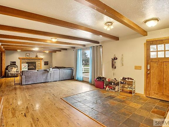 Step inside to a warm, inviting living room featuring a stunning stone-surround fireplace, exposed wood beams, and a large picture window that fills the space with natural light. The spacious dining area is ideal for hosting family gatherings and holiday dinners. The kitchen offers timeless wood cabinetry, granite countertops, and sleek stainless steel appliances—perfect for everyday cooking or entertaining. On the main floor, you'll find three generous bedrooms and a full bathroom with a double-sink vanity, ample counter space, and plenty of storage. Outside, enjoy a beautifully landscaped yard on an expansive city lot just under one acre. Relax on the large wood deck or gather around the fire pit with its concrete surround for cozy evenings under the stars. All this, just minutes from Highway 91 and downtown Blackfoot, yet tucked away in a peaceful neighborhood. Schedule your showing today