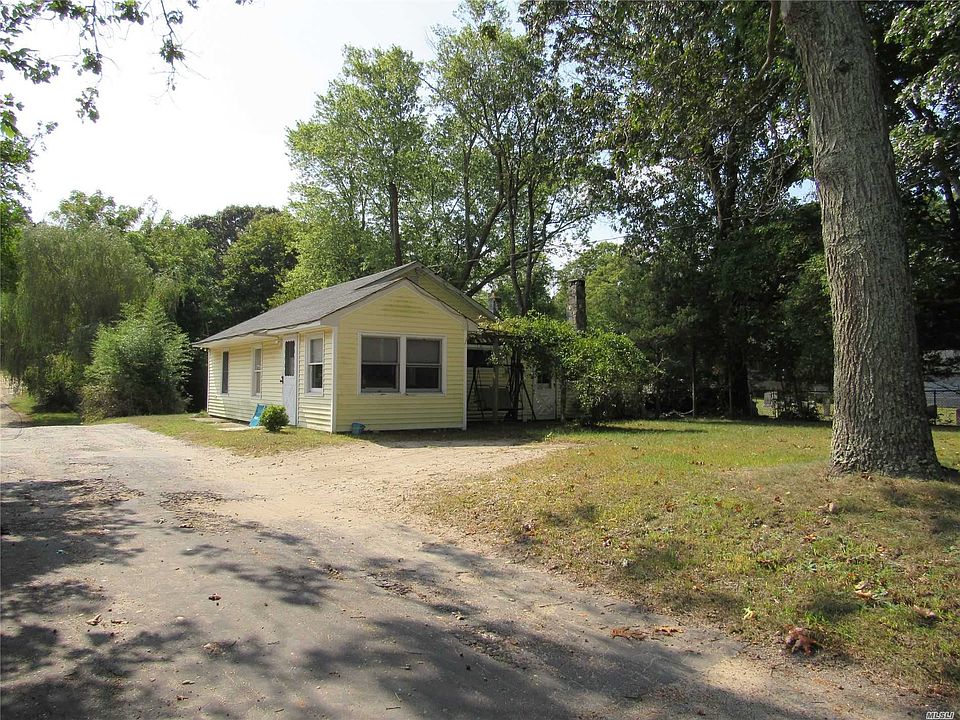 Plenty of privacy comes with this 1000+Sq.ft. starter home and 420 s.f barn on 1.4 acre. Surrounded on two sides by Suffolk County wooded Parkland, this home Includes 2 BR, LR w/fpl, kitchen, full bath, and enclosed porch. Sliders onto rear deck overlooking Koi pond and plenty of rear yard. Low taxes! Private Marina 1/3 mile. Rent a boat slip, and walk to bay at the end of the road. Close to shopping, ocean beaches, N.F. farms and vineyards. Please do not enter property without Agent!