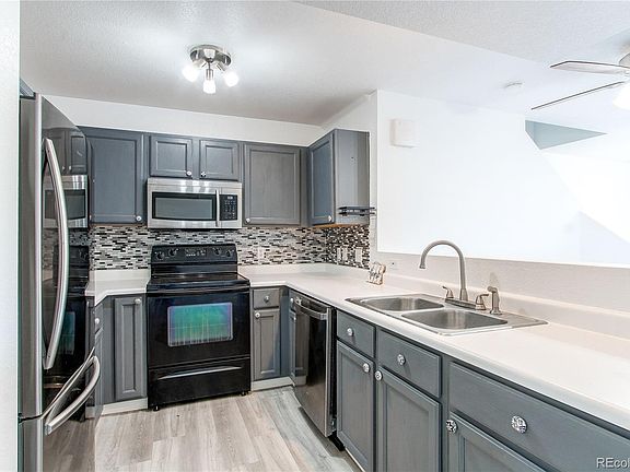 Welcome to your new home! don’t miss this rare 1-bedroom unit with over 1,000 square feet and an attached garage. As you enter from the ground floor new LVP flooring greets you in the entry and flow throughout the main level. The kitchen, dining room, and living room are all open to each other and flow seamlessly together. The kitchen is finished with updated cabinets and stainless appliances, and laminate countertops, and features a convenient pantry as well. The living room features access to the very private deck that backs to open space! Perfect for relaxing and enjoying Colorado sunsets. A powder bathroom completes the main level. The upper level holds the expansive bedroom suite, with an oversized bedroom, updated full bathroom, walk-in closet, and the laundry room is also on the upper level! The bedroom also features new LVP flooring, a ceiling fan, and room for a sitting area or nursery. The community offers amenities including a year-round pool, tennis courts, and walking trails. The HOA takes care of exterior maintenance, insurance, trash & recycling, and snow removal. The neighborhood is located less than a mile from the south gate of Buckley SFB, making it an attractive location for those stationed there. Walking distance to Side Creek Park with walking trails, tennis courts, playgrounds, and open green spaces. Banking, restaurants, retail, and gas stations are all located within 1 mile. Easy access to major routes -- 3 miles to E-470 and 6 miles to I-225. New paint and central air!!!